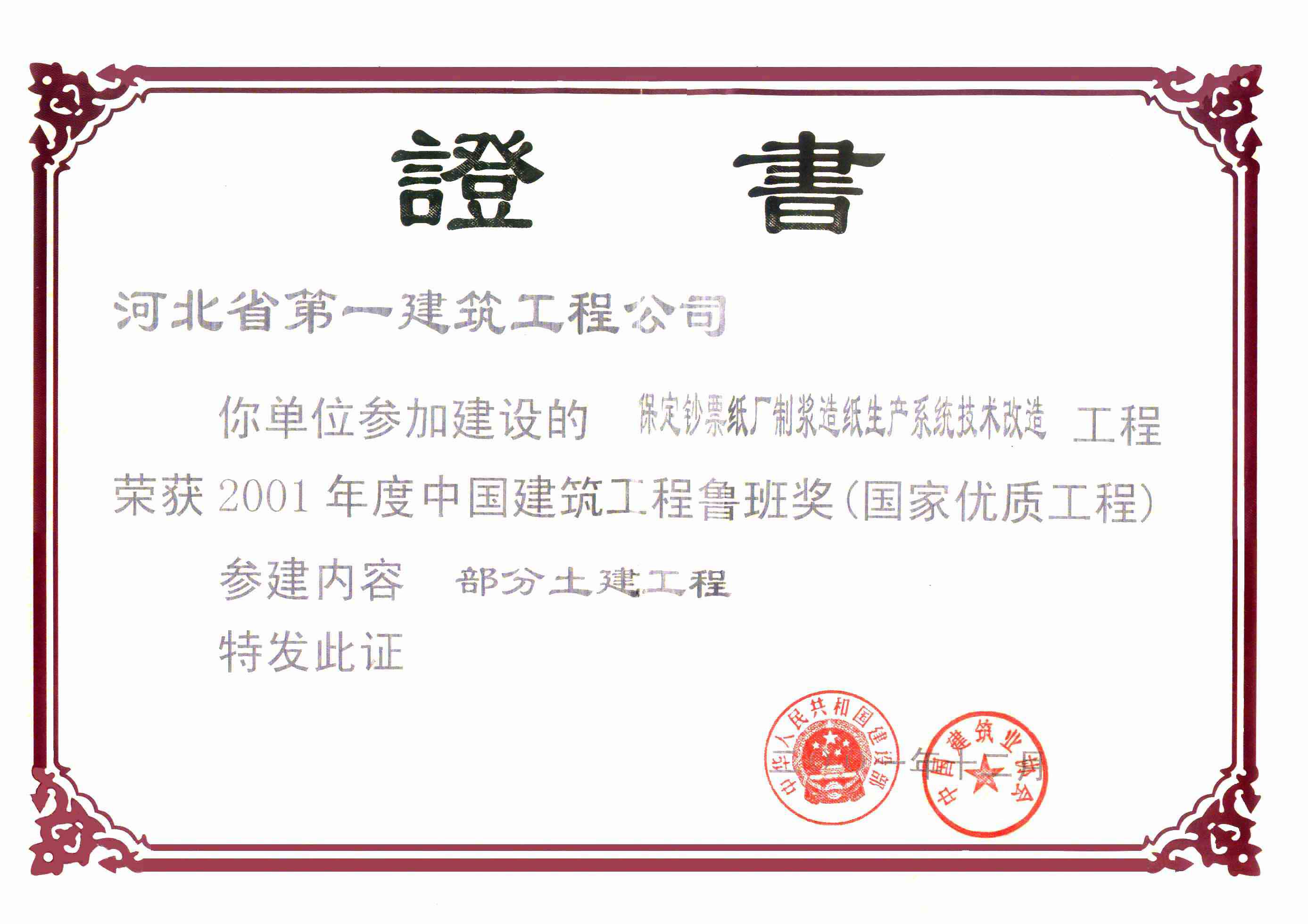 2001年度保定鈔票紙廠